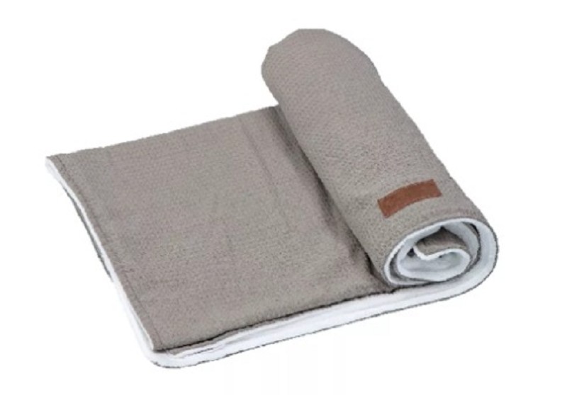 De buitenzijde is gemaakt van zacht textiel met een wafelpatroon, terwijl de binnenzijde is voorzien van een lichte vulling voor extra comfort en warmte. Deze gewatteerde opbouw zorgt ervoor dat de deken prettig aanvoelt en ondersteuning biedt bij liggen of rusten. Het materiaal is flexibel en bestand tegen dagelijks gebruik. De deken is wasbaar op circa 30 graden, wat het onderhoud eenvoudig maakt.